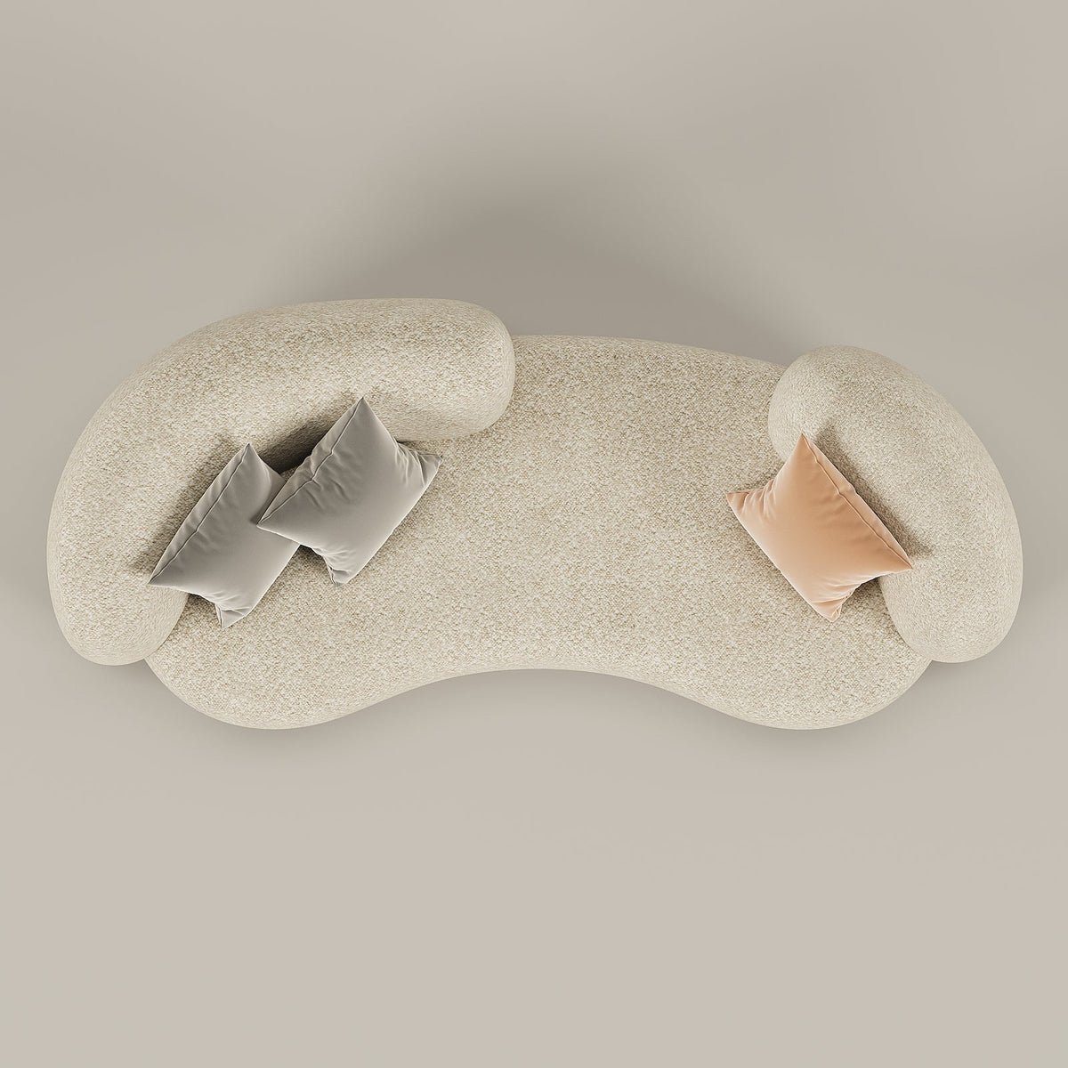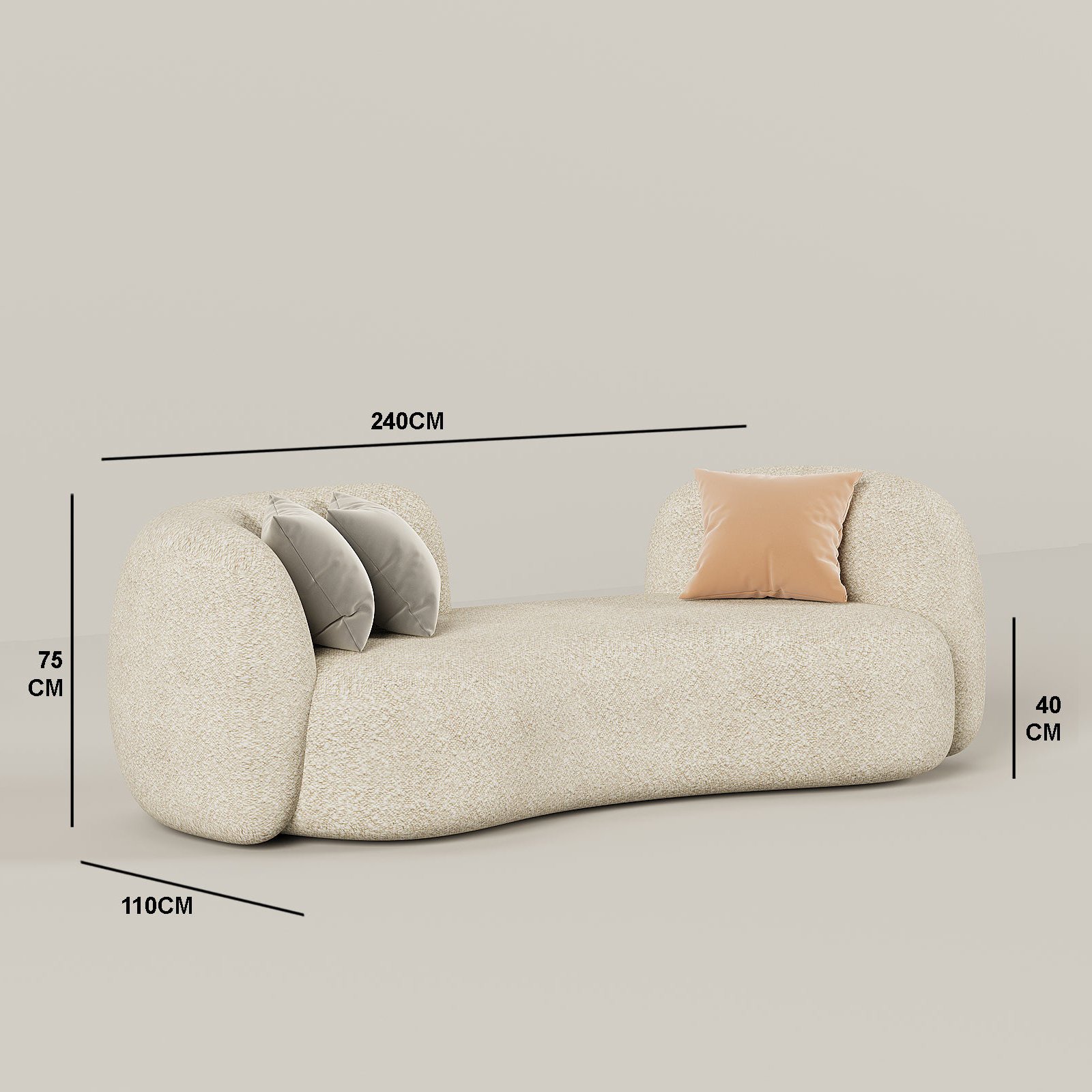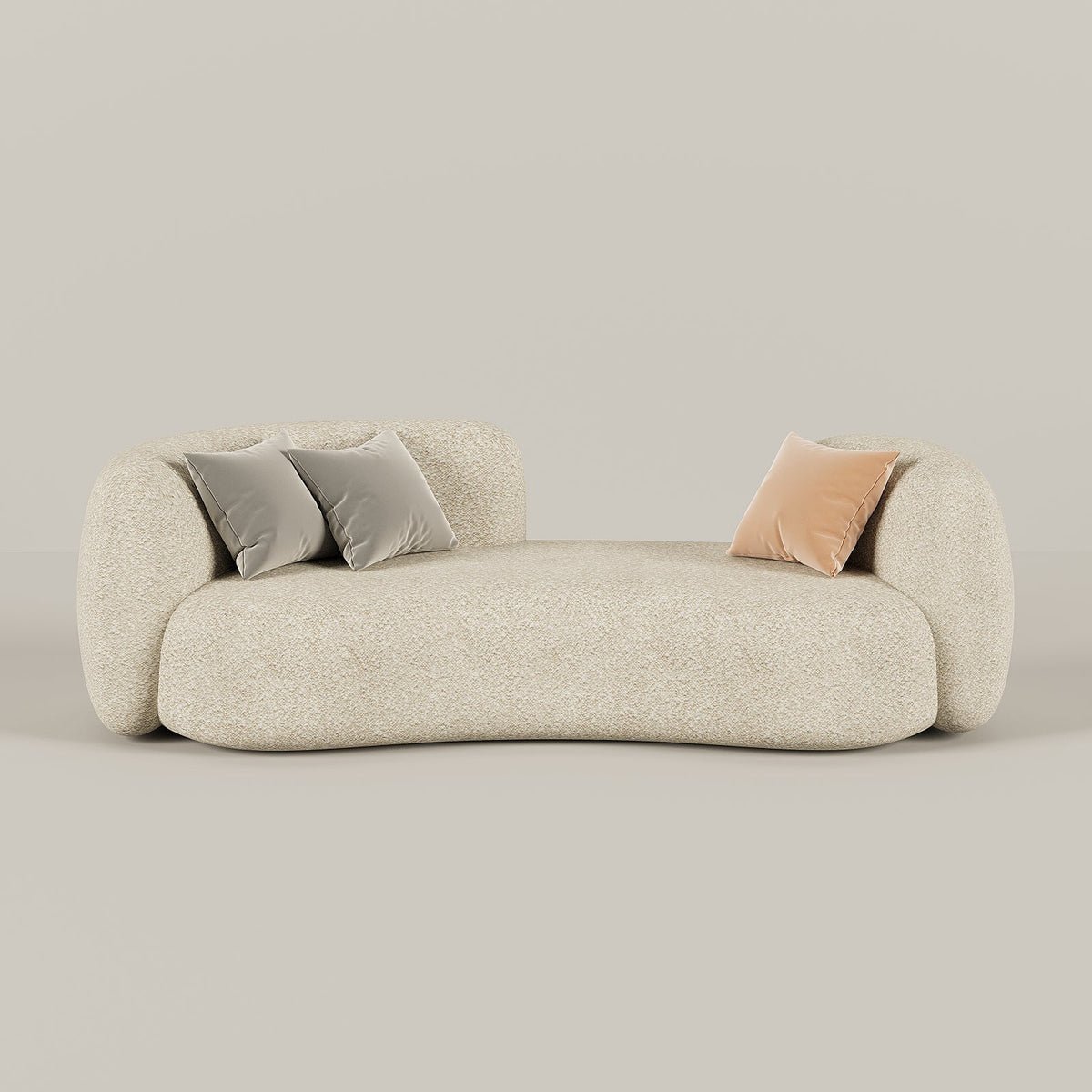 The Harley Curved Sofa is all about cozy, boho-chic style that stands out. It features a unique open-back design and a soft, curved shape wrapped in premium beige boucle fabric. Simple and sophisticated, it’s the perfect comfy statement piece to upgrade your living space.